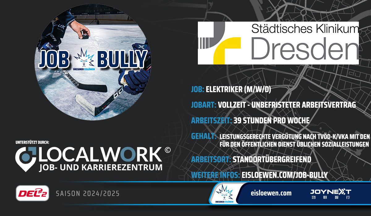 Gemeinsam mit LOCAL.WORK bekommen Eislöwenpartner die Möglichkeit über die Webseite der Eislöwen neue Mitarbeiter zu gewinnen. Das nutzt aktuell auch das Städtische Klinikum als Partner der Eislöwen. Über eisloewen.com/job-bully ist das aktuelle Jobangebot einsehbar.