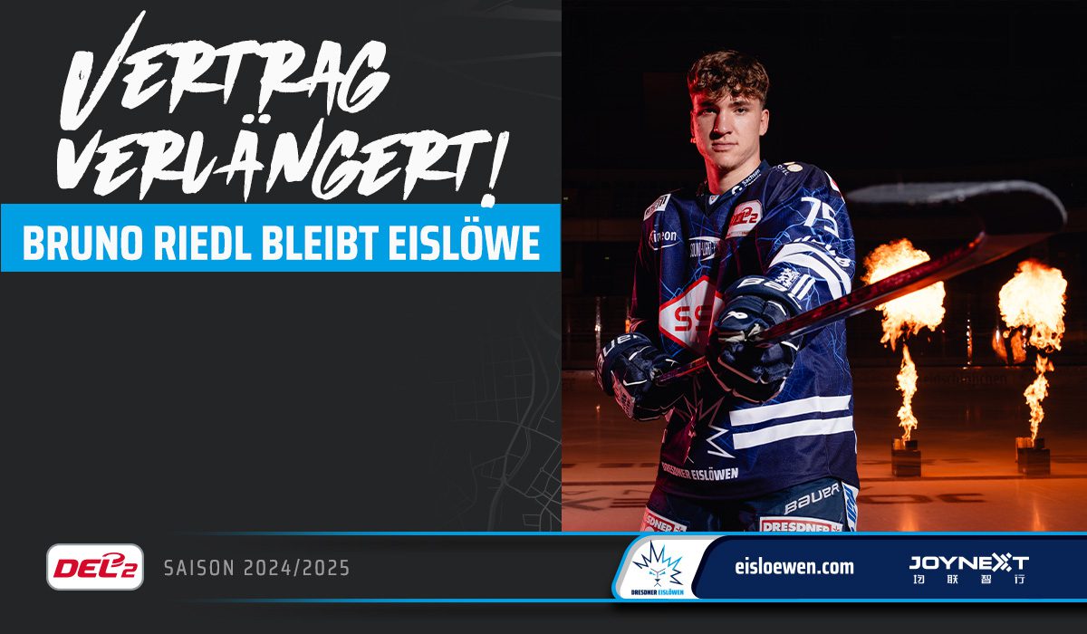 Bruno Riedl wird auch in den nächsten beiden Spielzeiten das Trikot der Dresdner Eislöwen tragen. Der Vertrag mit dem Verteidiger ist um zwei Jahre verlängert worden. Im Rahmen des Eislöwen-Fanstammtisches wurde die Verlängerung offiziell verkündet.