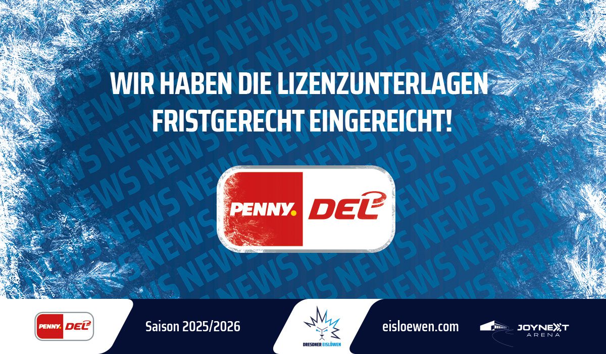 Nach dem sportlichen Aufstieg haben die Dresdner Eislöwen den nächsten Schritt in Richtung PENNY DEL getan. Die Lizenzunterlagen sind fristgerecht an das Ligabüro in Neuss übermittelt worden. Die Unterlagen wurden gemäß Vorgaben elektronisch versendet. Der Eingang wurde bestätigt.