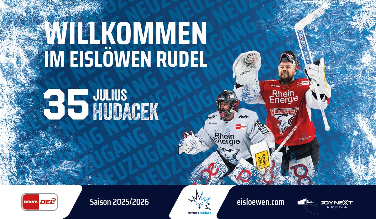 Hudacek wird bei den Dresdner Eislöwen die Rückennummer 35 erhalten. Mit einer Fangquote von 91 Prozent in der Hauptrunde und über 90 Prozent in den Playoffs hatte er erheblichen Anteil an der starken Saison der Kölner Haie und gehörte zu den Top-Torhütern der PENNY DEL. Zu Hudaceks Markenzeichen gehören ausgefallene Tänze nach besonderen Siegen auf dem Eis.