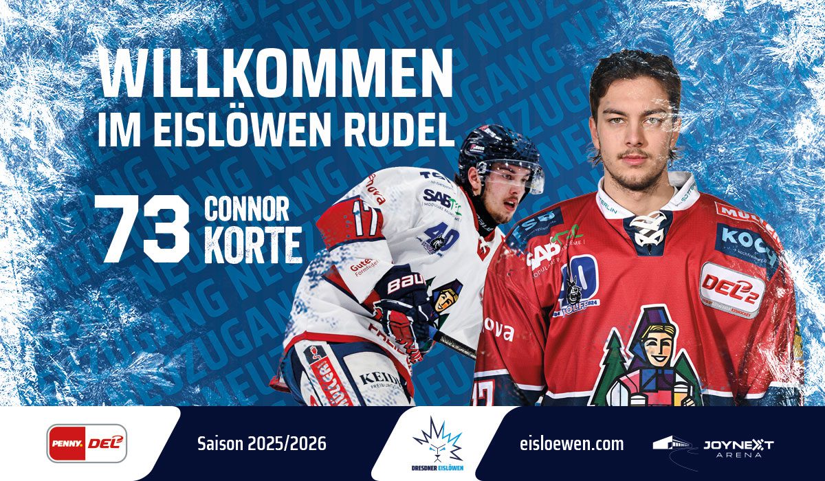 Die Die Dresdner Eislöwen haben Connor Korte verpflichtet. Der 22-jährige Deutsch-Österreicher wechselt vom EHC Freiburg an die Elbe. Für den gebürtigen Oberndorfer ist Dresden die vierte Station im deutschen Profi-Eishockey. Er wird bei den Eislöwen das Trikot mit der Nummer 73 tragen.