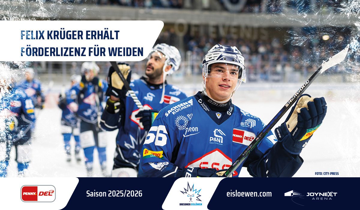 Felix Krüger: „Ich bin den Eislöwen und Weiden dankbar für die Möglichkeit, zusätzliche Einsätze bei den Blue Devils zu absolvieren. Ich möchte die Zeit nutzen, um mich weiterzuentwickeln und wertvolle Erfahrungen zu sammeln, die mir auch in Dresden helfen werden.“