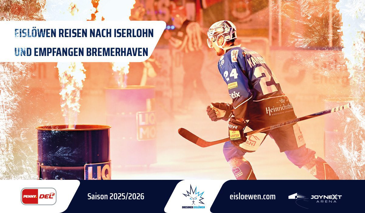 Auf die Dresdner Eislöwen wartet ein intensives Wochenende in der PENNY DEL: Am Freitagabend (19:30 Uhr) gastieren die Blau-Weißen bei den Iserlohn Roosters, bevor am Sonntag (14:00 Uhr) die Fischtown Pinguins in der JOYNEXT Arena empfangen werden.