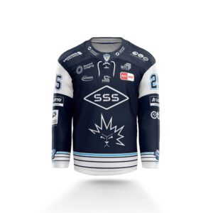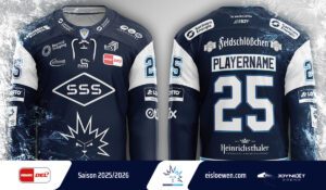 Steve Maschik, Prokurist der Dresdner Eislöwen: „Wir wollten ein Design, das unsere Farben stark repräsentiert. Am Kragen befindet sich das Vereinslogo – ein Symbol unserer Verbundenheit zum Standort und Nachwuchs. Auf dem Ärmel sind Datum, Clubname und das Event-Logo platziert, um die besondere Partie hervorzuheben. Der große Eislöwe auf der Vorderseite steht für Stärke und Stolz, während die hellblaue Kontur der Rückennummern das Design perfekt abrundet.“