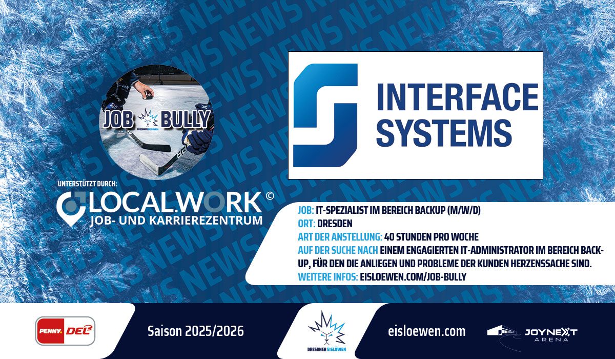 Gemeinsam mit LOCAL.WORK bekommen Eislöwenpartner und Firmen die Möglichkeit über die Webseite der Eislöwen neue Mitarbeiter zu gewinnen. Das nutzt auch unser Partner, die interface systems GmbH auf der Suche nach einem IT-Spezialist im Bereich Backup (m/w/d). Das aktuelle Job-Angebot ist über Stellenbeschreibung einsehbar.