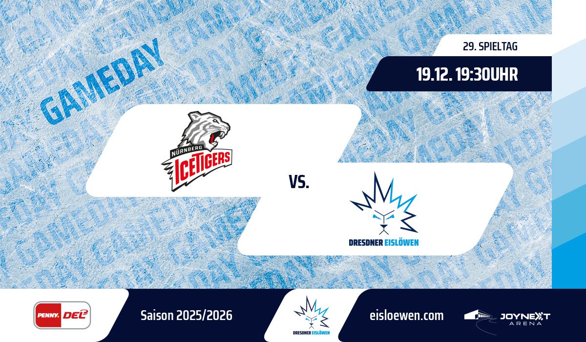 Für die Dresdner Eislöwen steht am kommenden Wochenende ein intensives Programm an, das zugleich den Auftakt in die heiße und spielfrequente Weihnachtsphase markiert. Am Freitag sind die Blau-Weißen auswärts bei den Nürnberg Ice Tigers gefordert, ehe am Sonntag das Heimspiel gegen den ERC Ingolstadt in der JOYNEXT Arena ansteht.