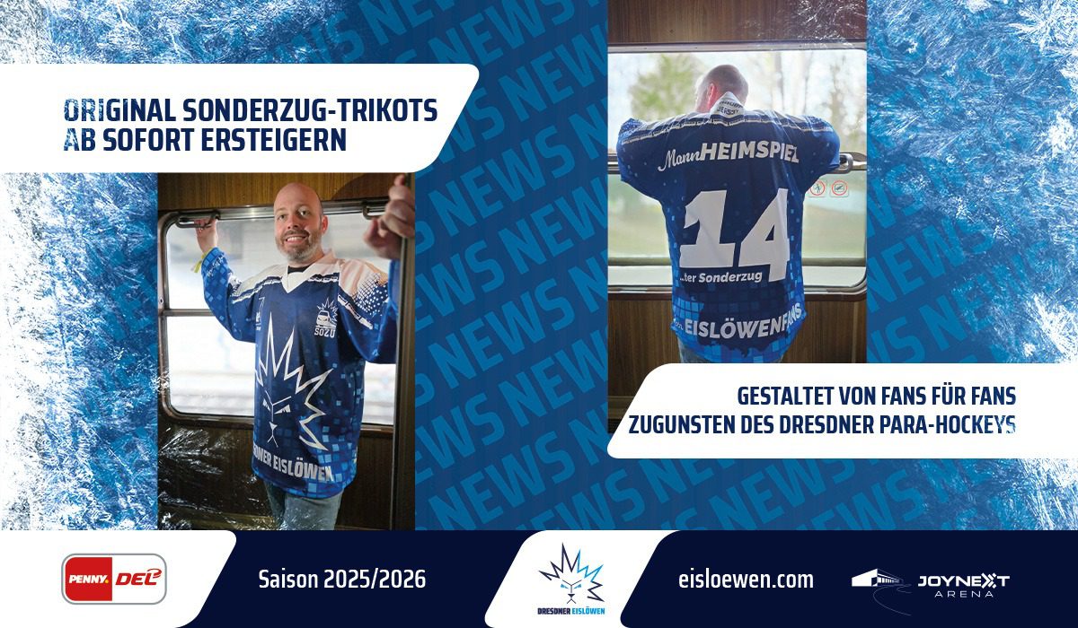 Ein besonderes Trikot für einen besonderen Zweck: Noch bis zum Mittwoch, 7. Januar können die exklusiven Warm-up-Sonderzug-Trikots ersteigert werden. Der Erlös der Auktion kommt dem Para-Eishockey in Dresden zugute und fördert damit Inklusion, Teamgeist und sportliche Leidenschaft. Das Startgebot pro Trikot beträgt 50 Euro.