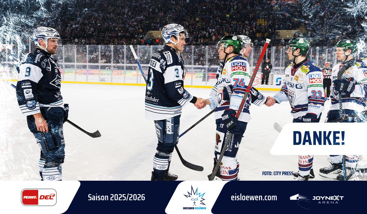 Darüber hinaus bedanken wir uns bei den Eisbären Berlin: Danke, dass ihr an diesem besonderen Tag unsere Gäste gewesen seid. Es war das erste Spiel unserer beiden Clubs in der höchsten deutschen Spielklasse auf Dresdner Boden und wir hätten es uns kaum schöner vorstellen können. Abgesehen von der Punkteverteilung.