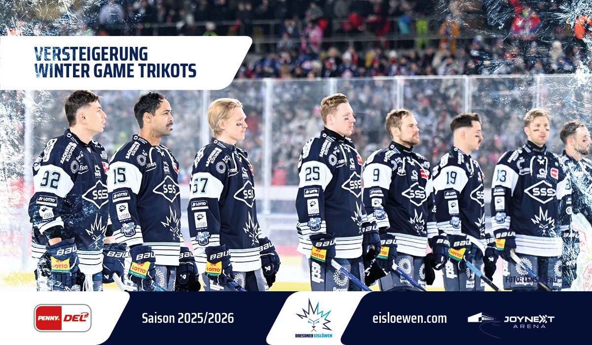 Am Samstag, 10. Januar, bestritten unsere Dresdner Eislöwen das DEL WINTER GAME powered by Magenta Sport im Rudolf-Harbig-Stadion. Trotz der kalten Temperaturen war das Stadion in der Partie gegen die Eisbären Berlin mit 32.248 Zuschauern sehr gut gefüllt. Bei der 2:3-Niederlage nach Verlängerung in ihrem ersten Freiluftspiel der Clubgeschichte in der PENNY DEL trugen die Blau-Weißen ganz besonderen Trikots, die nun in die Versteigerung gehen.