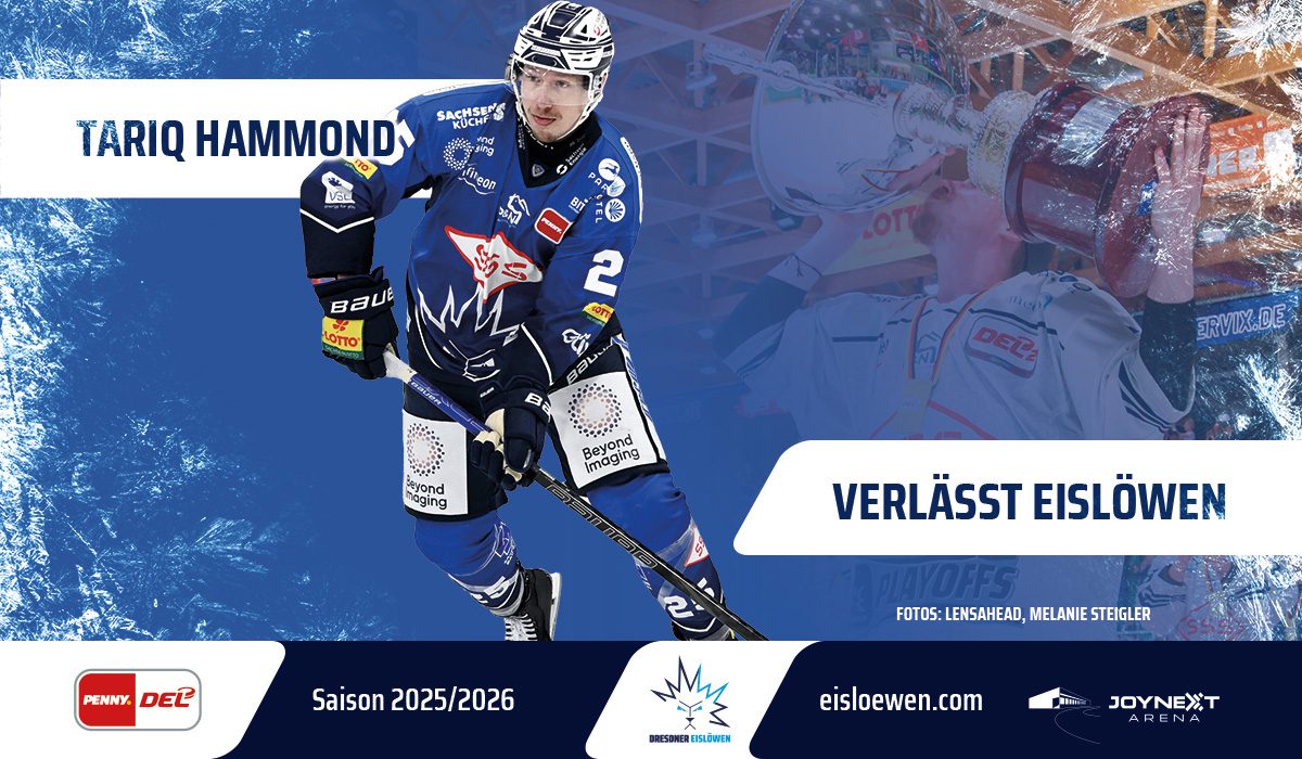 Die Dresdner Eislöwen und Verteidiger Tariq Hammond haben den bis zum Saisonende laufenden Vertrag in gegenseitigem Einvernehmen vorzeitig aufgelöst. Der Verteidiger wird mit sofortiger Wirkung zur Düsseldorfer EG wechseln, bei der er auch für die kommende Spielzeit einen Vertrag unterzeichnet hat. Ein von den Eislöwen unterbreitetes Angebot für die kommende Saison nahm Hammond nicht an.