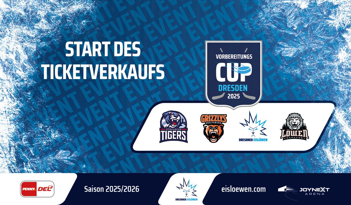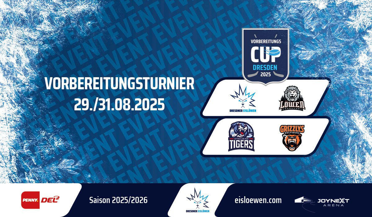 Der Vorverkauf für den Vorbereitungs-Cup 2025 beginnt ab sofort. Zum ersten Mal werden Ende August vier Teams aus der PENNY DEL am traditionellen Vorbereitungsturnier der Dresdner Eislöwen teilnehmen. Neben den Eislöwen als DEL-Aufsteiger sind die Löwen Frankfurt, Grizzlys Wolfsburg und die Straubing Tigers mit dabei.