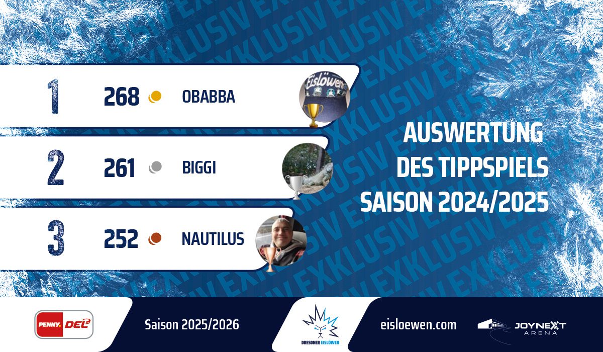 Auch in der Meistersaison in der DEL2 konnten sich die Eislöwenfans wieder an einem Tippspiel in der Eislöwen-App beteiligt. Heute wollen wir unsere drei Gewinner – die TOP DREI unter den Tippern küren.